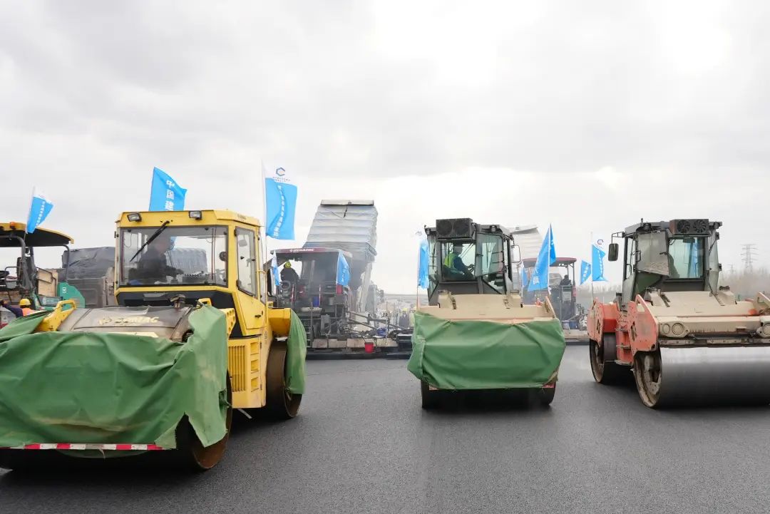 此次完成沥青面层贯通的ZT9段单幅全长17.4km,沥青上面层厚度4cm,路面设计宽度18.75m。为最大限度抢抓路面施工黄金期,沈海高速改扩建工程团队尽锐出战,以“进场即决战、开工即冲刺”的姿态,有效化解交通导改、土地征拆、交叉施工等多重困难,用时46天完成左幅主线沥青面层施工,率先实现沈海高速改扩建工程左幅主线沥青路面贯通任务。