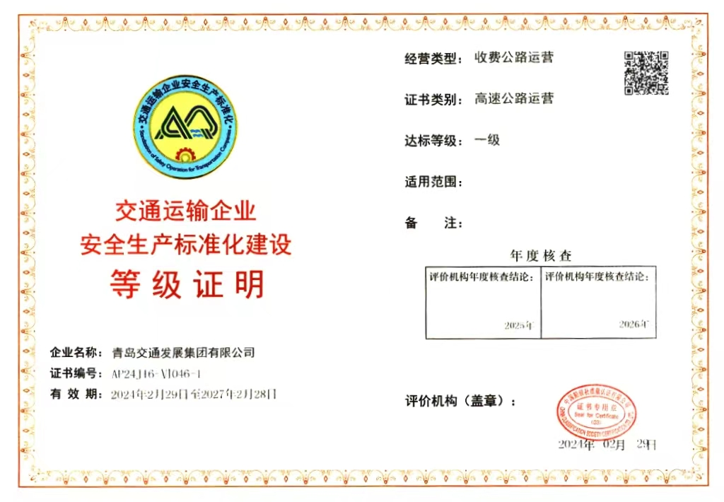 被交通运输部授权机构评为安全生产标准化建设一级企业。