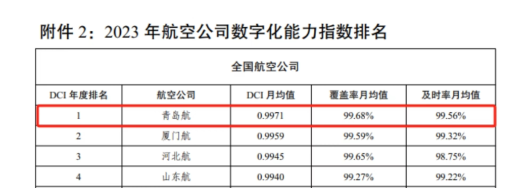 数字化能力指数全行业排名第一,获中国民用航空局运行监控中心明传电报通报。