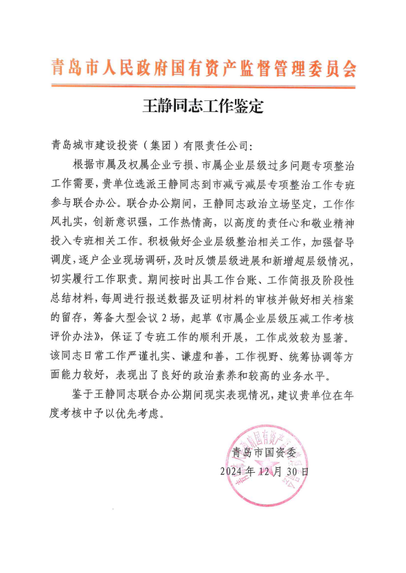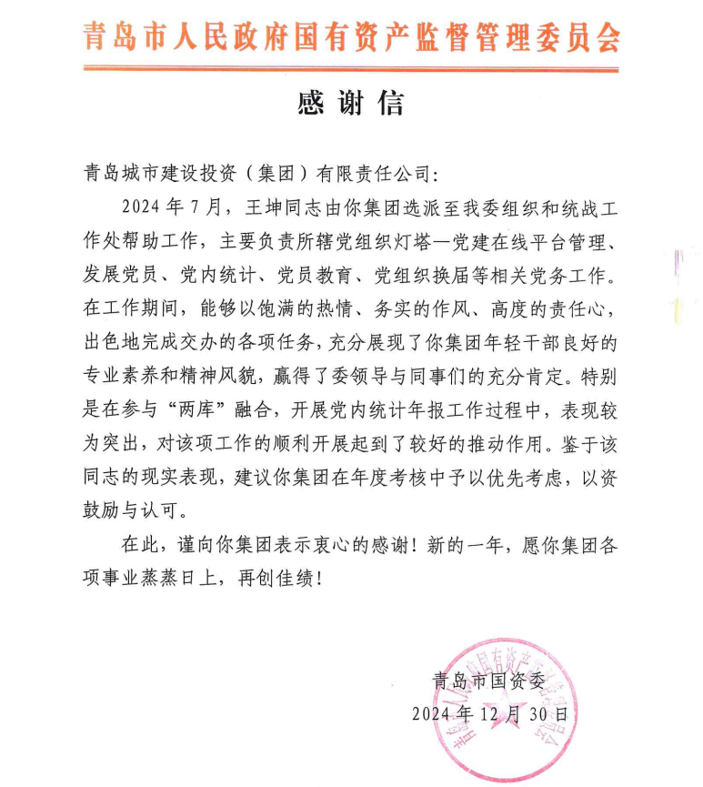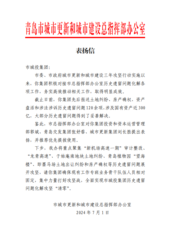 被中国城市建设投融资论坛组委会、中国城市产业协同创新联合体评为“2024年国企平台公司转型升级标杆企业”。