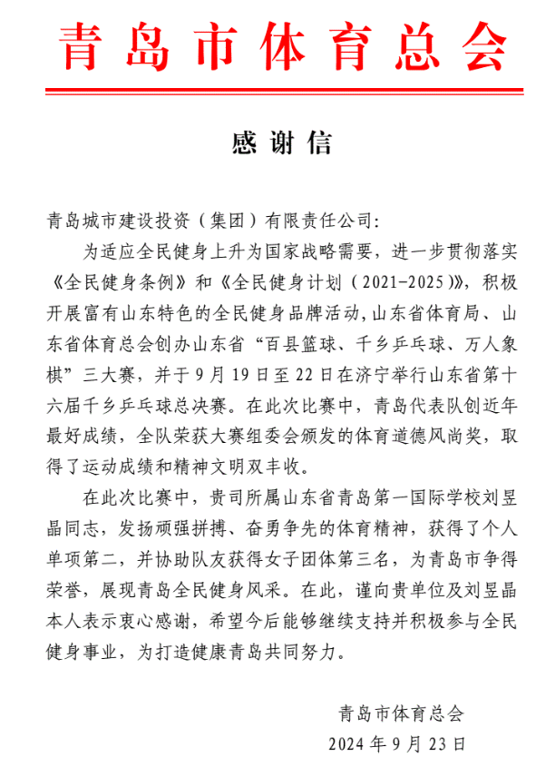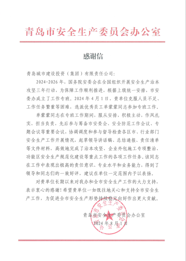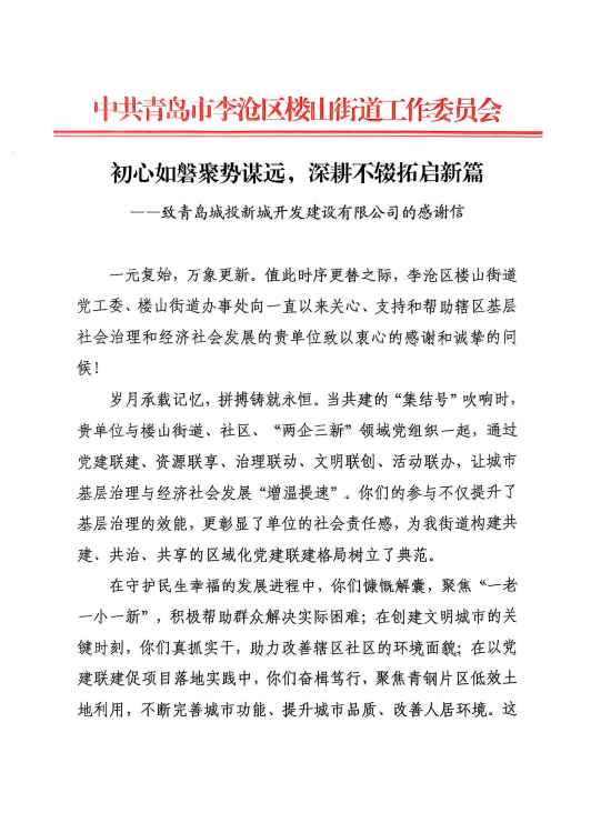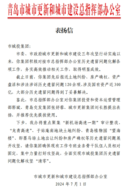 在过去的2024年,九州平台全体干部员工全面贯彻落实党的二十届二中、三中全会精神,认真贯彻落实集团党委决策部署,以勇争上游的雄心壮志,“打头阵、当先锋”的进取意识,出色完成各项工作任务,涌现出了一批表现优异、成绩突出的集体和个人,收获了131项集体荣誉、67项个人荣誉,以及来自多个单位的26封感谢信。社会各界的认可与感谢,就是城投集团继续奋进前行的不竭动力!以下为2024年度部分荣誉和感谢信集锦: