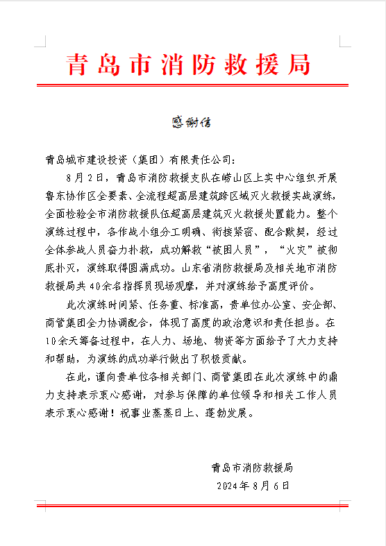 被中国城市发展研究会评为2024全国城投公司总资产榜单第5名、营业收入榜第5名。