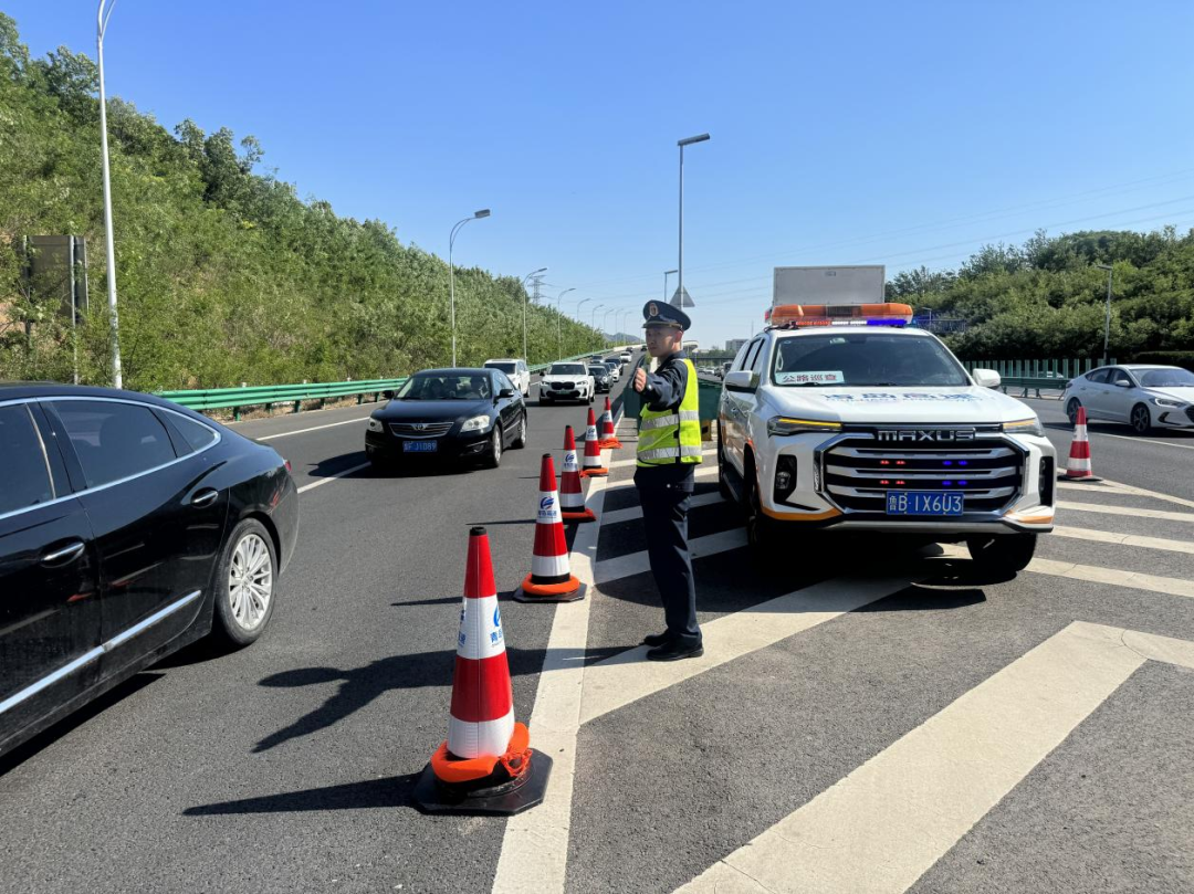 面对节假日大流量保障挑战,青岛高速与市交警支队打破传统协作边界,依托“党建引领 畅安高速”联勤联动机制,派驻运营人员到交警支队指挥大厅,与交警部门建立起“空间零距离、数据全贯通、响应无时差”的联勤联动工作方式,共享事故易发路段监测数据。此外,在青新高速上行K1(仙山路高架汇入青新高速主线处)等易拥堵路段摆放锥形帽,渠化交通流向,减少匝道车辆汇入主线变道节点,规范车辆秩序。在青银高速下行出李村匝道车流量较大时,灵活采取管控措施,联合青平大队启用应急车道,最大化提升通行能力。