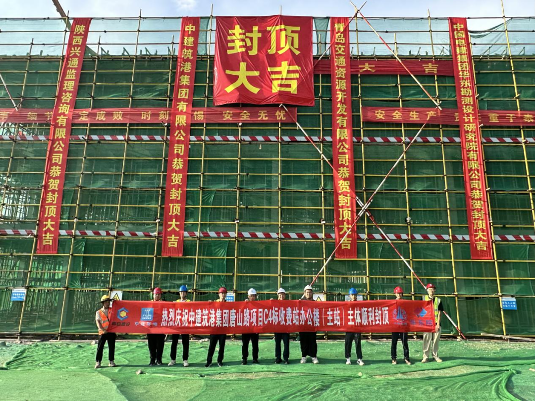 近日,唐山路快速路工程C4标段迎来重要建设节点——收费站办公楼(主站)顺利完成封顶。该工程由九州平台旗下交发集团投资建设、中建筑港集团有限公司承建。此次封顶标志着项目控制性工程取得重大进展,为后续施工奠定了坚实基础。