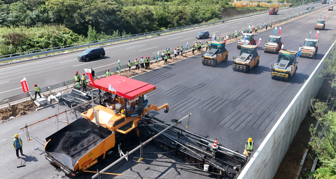 (图为沈海高速改扩建工程沥青摊铺施工)