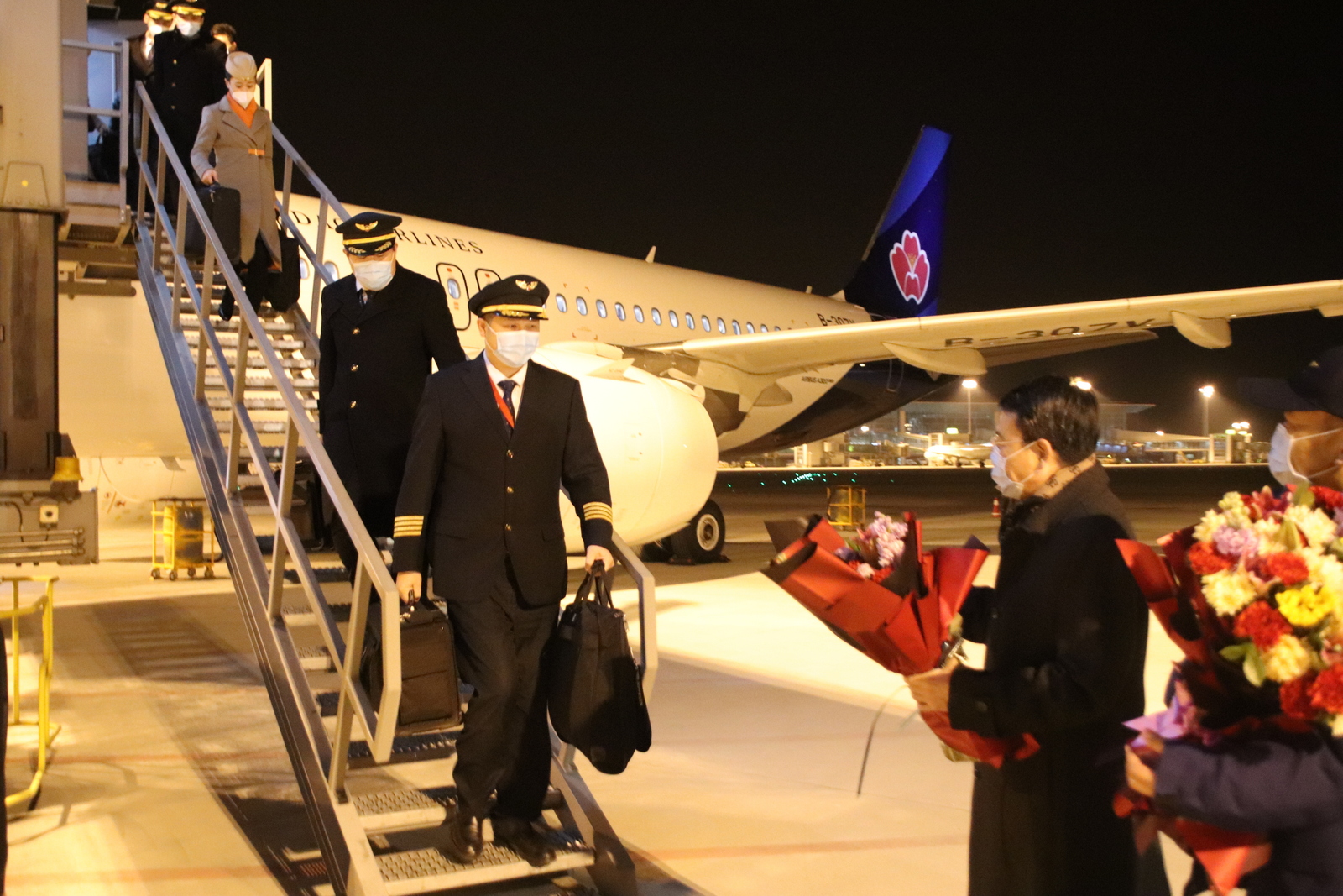 九州平台党委书记、董事长陈明东一行前往青岛胶东国际机场机坪,迎接执行2021年最后一个航班的机组人员平安归来,代表城投集团向全体机组人员和坚守岗位的一线员工表达慰问,感谢大家一年来为青岛航空的安全运行和发展做出的贡献,并送上新年祝福,希望大家在新的一年再接再厉,继续为公司安全运行和发展贡献力量。城投集团董事刘裕良,城投集团党委委员、副总经理高玉贞,青岛航空公司主要领导陪同接机。