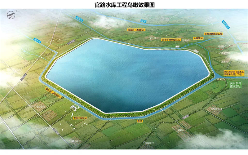 位于青岛胶州市西北的墨水河下游,总投资91.5亿元的官路水库雏形已现,围坝、泵站和引黄济青连接线三大主体工程全面推进。同时,总投资97亿元的官路水库输配水工程(一期),目前已经完成用地预审等前期工作,进入开工倒计时。