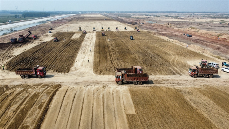 机械轰鸣、人头攒动,电焊火花滋滋作响,浇筑支架叮当声此起彼伏。各参建单位千名工人,上百台大型设备紧锣密鼓开展围坝填筑、泵站穿坝砼结构、引黄济青连接线等重要节点工程施工,现场一派热火朝天的繁忙景象。