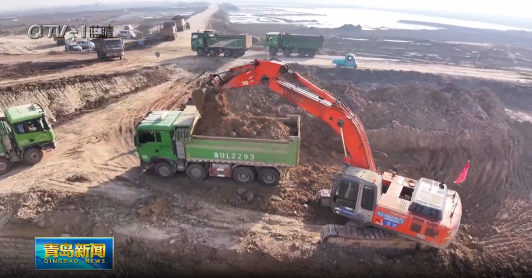 记者:我现在是在官路水库围坝工程1标段的施工现场,尽管天气寒冷,但可以看到远处的工人在忙得热火朝天。2022年,城投集团根据青岛城市发展需求,投资建设官路水库这一省重点工程、也是青岛市重大民生工程,建成后将成为青岛市的主要水源地,并有效破解水资源短缺对经济社会高质量发展的制约。