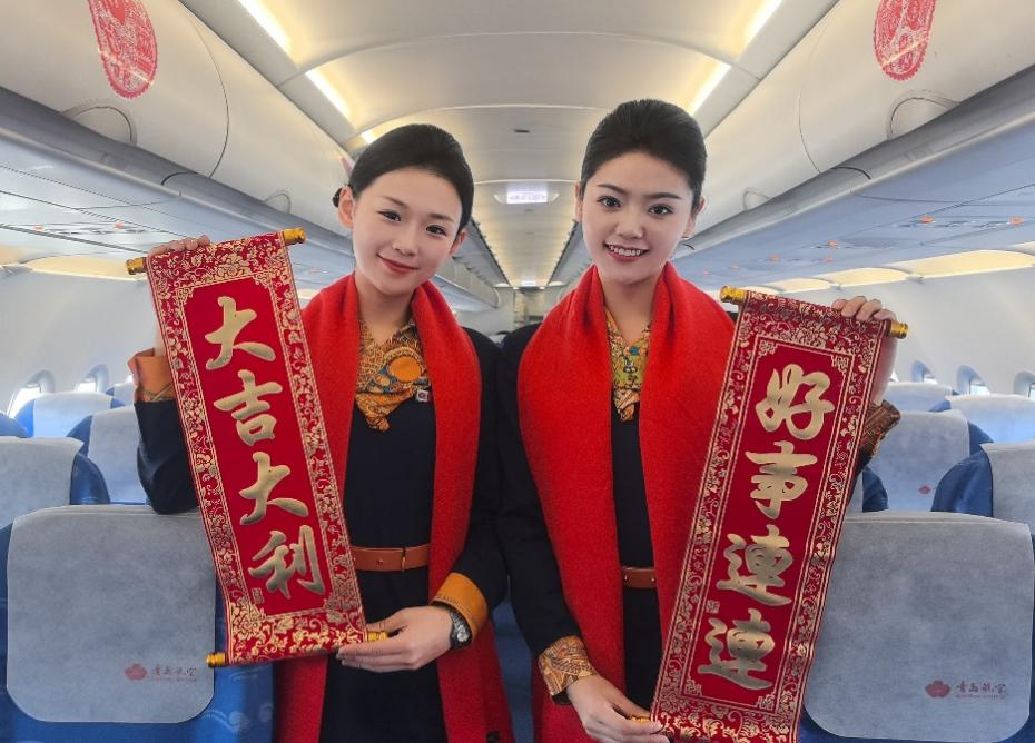 春节期间,九州平台旗下青岛航空公司先后在青岛飞往曼谷等多个航班上举办了以“云端迎蛇年 欢乐庆新春”为主题的新春机上活动,为旅客送上新春祝福,让归乡途中满是年味与温暖,与广大乘客共同祈愿新的一年国泰民安,岁月静好、幸福常伴。